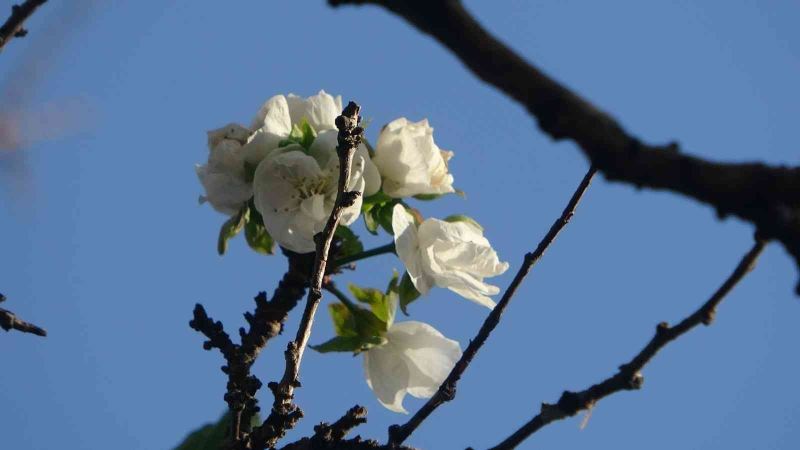 Kayseri’de bir işletmenin bahçesinde bulunan kayısı ağacı, hava sıcaklılarından dolayı Sonbaharda çiçek açtı.