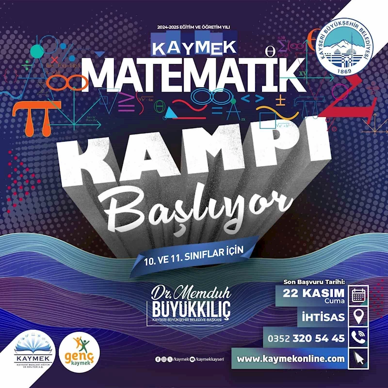 Kayseri Büyükşehir Belediyesi bünyesinde faaliyet gösteren KAYMEK A.Ş. tarafından, öğrencilerin matematiğe karşı ilgi duymalarını sağlamak ve motivasyonlarını arttırmak amacıyla düzenlenecek Matematik Kampı kayıtları başladı.