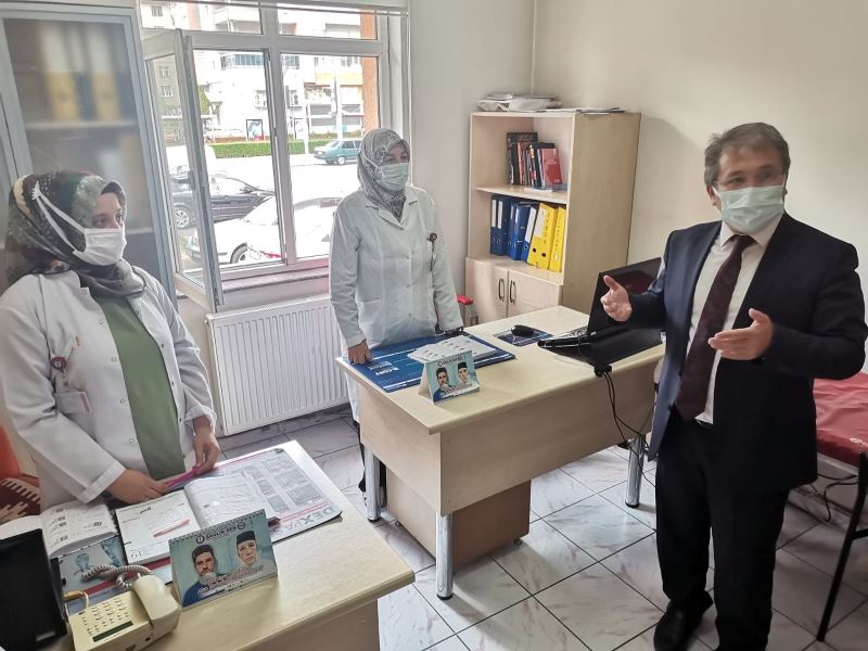 Öte yandan Hacı Ahmet Özeşsiz Aile Sağlığı Merkezi’nde görevli Ebe Hülya Yılmaz, kendisini ziyaret eden İl Sağlık Müdürü Benli’ye, “Emekliliğim geldiği halde pandemi döneminde devletimizi yalnız bırakmamak adına emekliliğimi vermeyeceğim. Bu işte katkım olsun, bu savaşta bulunmak istedim” dedi. Benli ise tüm fedakar sağlık çalışanlarına hizmetleri için teşekkür etti.