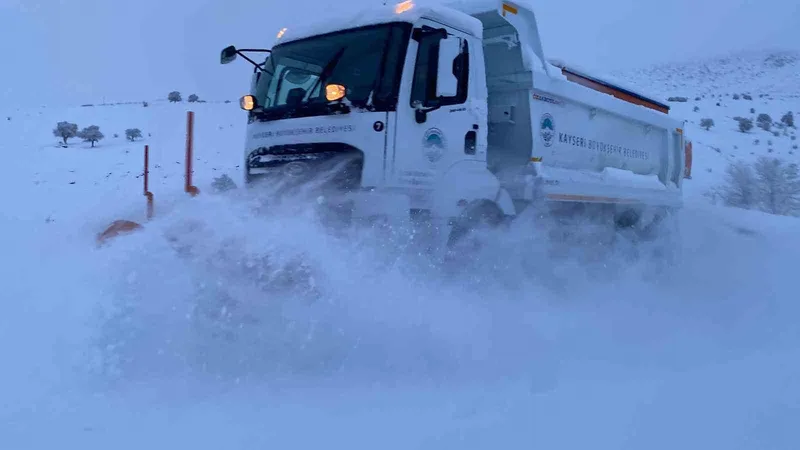 Kayseri Büyükşehir Belediyesi, kar yağışı ve tipi sonrası şehir merkezi ve kırsal mahallelerde yürüttüğü çalışmalarla ulaşımı kesintisiz hale getiriyor. 10 ilçede 155 kırsal mahalle yolu ulaşıma açılırken, ekipler gece gündüz demeden 24 saat esasına göre sahada görev yapıyor.