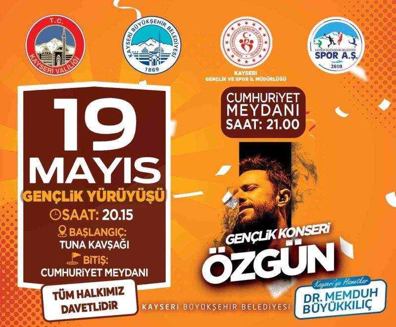 Yürüyüşün hemen ardından Gençlik Konseri ile sanatçı Özgün, Kayserili hayranlarıyla buluşacak. Ünlü sanatçı Özgün’ün sahne alacağı ve birbirinden eğlenceli parçaları seslendireceği gençlik konseri, 19 Mayıs Perşembe günü saat 21.00’de başlayacak. Büyükşehir Belediye Başkanı Dr. Memduh Büyükkılıç, tüm Kayserilileri gençlik yürüyüşü, bisiklet turu ve Özgün konserine davet etti. Konser öncesi sanatçı Özgün de, tüm Kayserilileri konsere davet ederek, “19 Mayıs akşamı Cumhuriyet Meydanı’nda saat 21.00’de harika bir konserimiz olacak. Kayseri Büyükşehir Belediyesi’nin katkılarıyla gerçekleşecek olan gençlik konserimize tüm Kayserili dostlarımızı bekliyoruz” dedi.