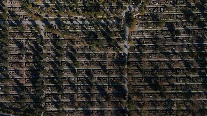 Kayseri Şehir Mezarlığı’nda bulunan onlarca ağaç, sonbaharın gelmesiyle birlikte renkten renge girdi. Turuncu, kırmızı sarı, kahverengi renkleri alan ağaçlar görsel oluştururken, renk cümbüşü de dron ile görüntülendi.