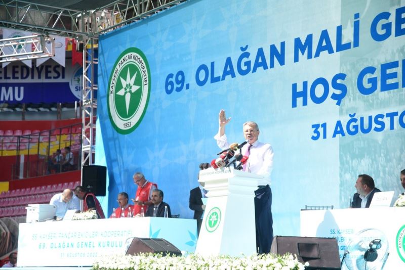 Akay, “Bu aziz çiftçi Türkiye’yi başkalarına muhtaç etmekten kurtarmak için üretimi en üst seviyede, en kaliteli seviyede yapmak için gayret gösterdi. Şeker sektörü Türkiye’nin vazgeçilmezi ve stratejik bir sektör. İşte bu stratejik sektöre sizler en büyük katkıyı sağlıyorsunuz. Geçen sene Türkiye’de kotalar doldurulamadı ama bizim çiftçimiz bu sene bunu fark etti. Şimdi daha fazla üretim yapmak için büyük bir gayret gösteriyorlar. Bizde size her türlü katkıyı, her türlü desteği veriyoruz. Sizi başımızın üzerinde tutuyoruz, taşıyoruz. Bu Kayseri Şeker’e ürettiğiniz pancarlar çok kıymetli, çok anlamlı ve çok değerli. Kayseri Şeker’de zaten adım adım ileriye doğru ilerliyor. Kayseri Şeker, 3’üncü fabrikasını alan, Turhal Şeker Fabrikasını alan sektördeki tek kuruluş olarak büyümesini devam ettiriyor. Hedef Kızıl Elma, hedef 4’üncü fabrika. Biz hep beraber yürüyeceğiz. Buraya heves edenler, buradan kendilerine fayda sağlamaya çalışanlara itibar etmediniz. Bundan sonrada itibar etmeyeceksiniz. Kayseri Şeker Türkiye’nin yıldız şirketi. Kutup yıldızı gibi parlayan bir şirket. Kayseri Şeker pırlanta gibi bir şirket. Onun için burayı hak edenlerin yönetmesi lazım. Bu şirketin geleceğini sizin iradeniz belirleyecek. Yani sosyal medyacılar, sosyal medyadan algı oluşturmaya çalışanlar, klavye kahramanları bu şirketin geleceğini tayin edemez” diye konuştu.