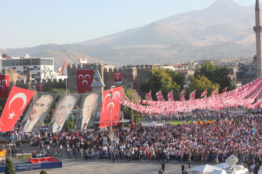 MHP Genel Başkanı Devlet Bahçeli, “2023’e Doğru Aday Belli, Karar Net” temalı açık hava mitinglerinin üçüncüsünü Kayseri’de yaptı.