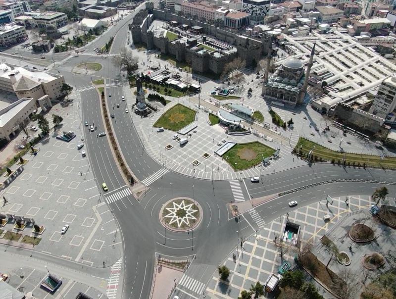 Cumhuriyet Meydanı’nda oluşan sakinlikte, havadan görüntülendi.