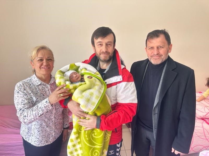 Genel Müdür Yardımcısı Ömer Altunsoy, Melikgazi Öğrenci Yurdunda yeni doğan depremzede bebeklere Gençlik ve Spor Bakanı Mehmet Muharrem Kasapoğlu adına altın hediye etti.