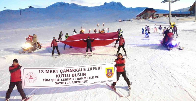 Kayseri İl Jandarma Komutanlığına bağlı ekipler, 18 Mart Çanakkale Zaferi ve Şehitleri Anma günü dolayısıyla Erciyes’te Türk bayrağı ve meşaleler ile kayarak şehitleri andı.