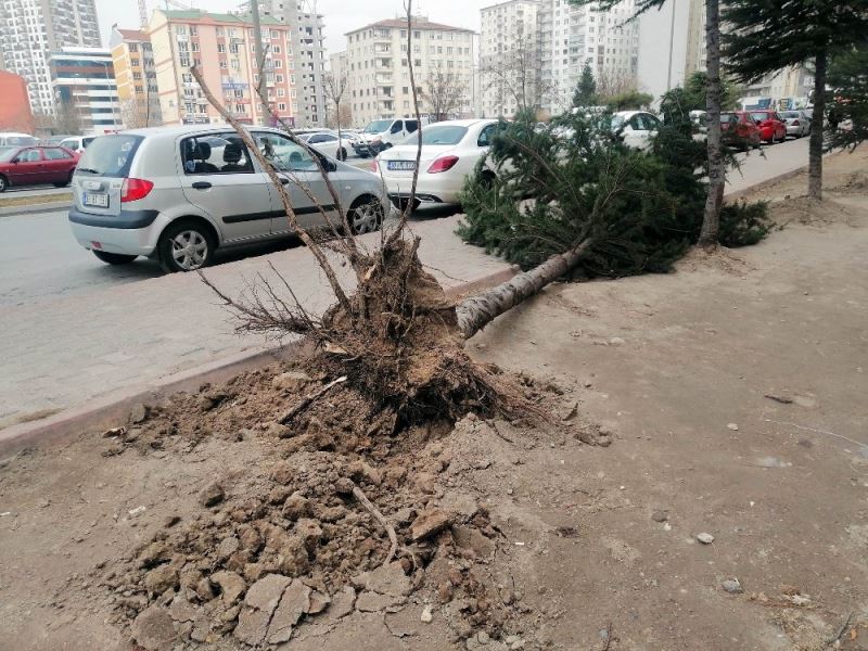 Kayseri’de etkisini gösteren kuvvetli rüzgar ağaçları sökerken, apartmanların çatılarını da uçurdu. Rüzgardan dolayı sökülen ağacın park halindeki aracın üstüne devrilmesi de güvenlik kameralarına yansıdı.