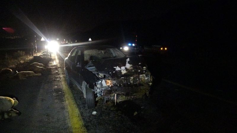 Kayseri’de koyun sürüsüne dalan otomobilin sürücüsü yaralanırken, 13 koyunda telef oldu.
