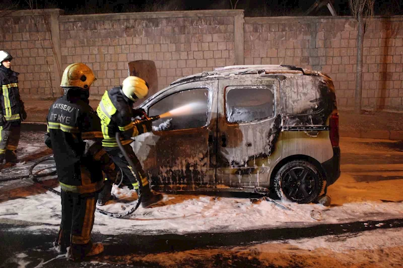 Kayseri’nin Melikgazi ilçesinde seyir halindeyken alev alan hafif ticari araç itfaiye ekipleri tarafından söndürüldü. Yanan araç kullanılamaz hale geldi.