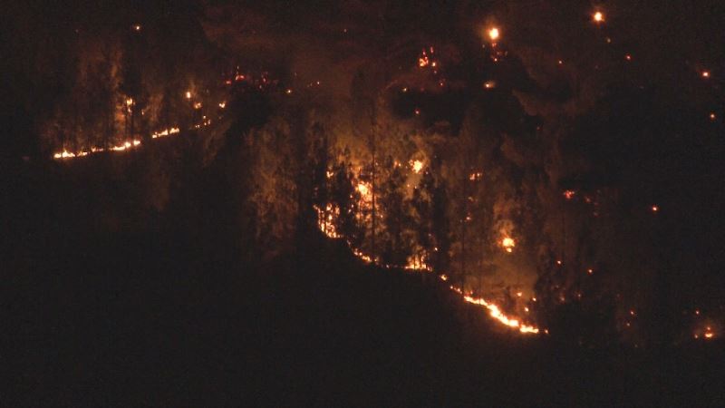 Kayseri’nin Yahyalı ilçesindeki Aladağlar Milli Parkı’nda sabah saatlerinde çıkan yangını söndürme çalışmaları sürerken, alevler ise bölgeyi kızıla boyadı.