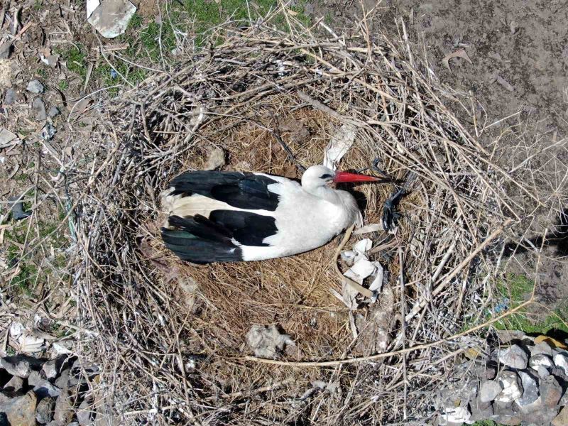 Kayseri’deki yuvalarına yerleşen leylekler havadan görüntülendi