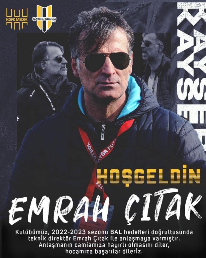 Kayserigücü Futbol Kulübü’nden yapılan açıklamada, “Kulübümüz, 2022-2023 sezonu BAL hedefleri doğrultusunda Teknik Direktör Emrah Çıtak ile anlaşmaya varmıştır. Anlaşmanın camiamıza hayırlı olmasını diler, hocamıza başarılar dileriz” denildi.