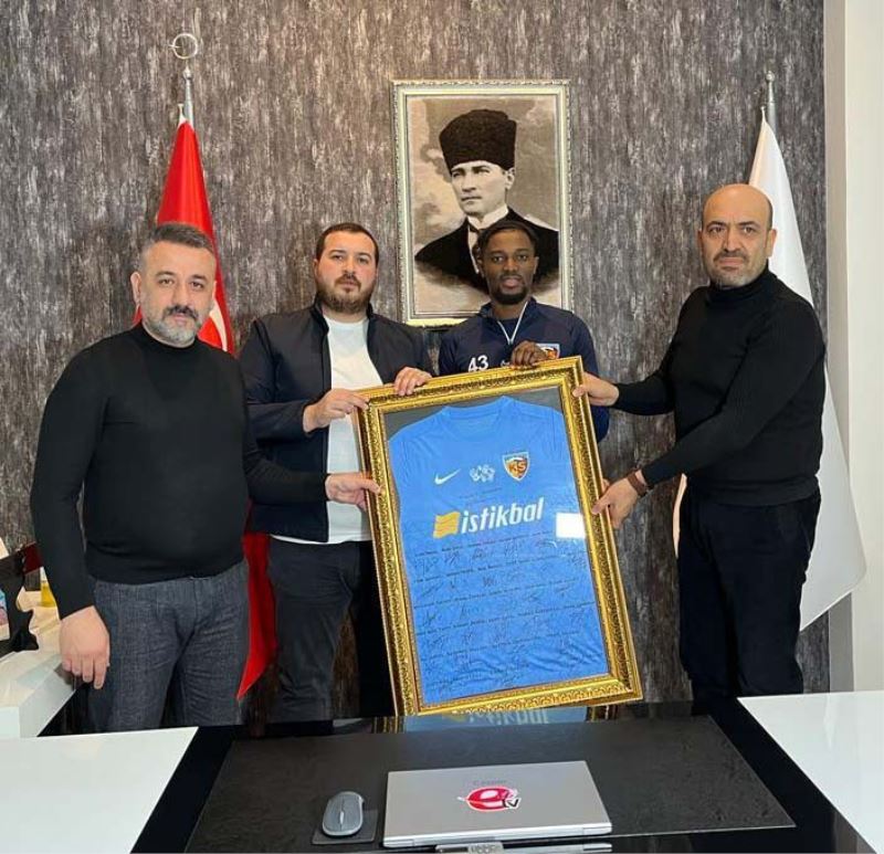 Kayserispor kaptanı Bernard Mensah, sarı kırmızılı takımın tarihi bir formasını depremzedeler yararına aldı. Mensah’ın 40 bin TL’ye aldığı formanın geliri depremzedelere harcanacak.