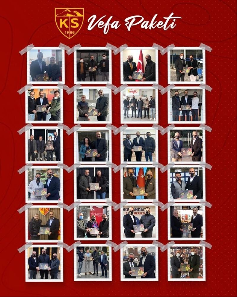 Kayserispor Vefa Paketi alan isimler şunlar: Hacı Ömer Okuducu (Hes Kablo Kayserispor eski yöneticisi), Bekir Okay Kiracıoğlu (Kayseri Strapor), Gültekin Soydan (Tekin Boya), Bekir Tuğrul (Tuğrul Kardeşler), Ahmet Kürtüncü (Esra Ticaret), Latif Ersoy (Ersoy Müteahhitlik), Yılmaz Akansu, Ömer Gülsoy (Kayseri Ticaret Odası Başkanı), Yılmaz Büyüknalbant (Kayserispor eski yöneticisi), Şükrü Sevim (HiTech İthalat), Mehmet Kolağası (Etna İnşaat), Saffet Güngör (Lineer Makine), Hacı Söyler (Portal Çelik Kapı), Kayseri Organize Sanayi Bölge Müdürlüğü, Nurettin Açıkalın (Açıkalın Alt Yapı), Mert Açıkalın (Açıkalın Alt Yapı), Güldüoğlu Ailesi (Meysu), Ercan Göktepe (Hisar Pastanesi), Burak Göktepe (Hisar Pastanesi), Caz Özaslan (Mayagöz), Erkay Doğan (Cadde 38), İbrahim Özaslan (Mayagöz), Osman Orbay (CallSure), Hakkı İlgü (Gürkan Ofis), Süleyman Sarptaş, Hiyadet Çelik, Hazar Aksoy (Dakaş İnşaat), Salih Fazlıoğlu (Şahin Sucukları), Hakan Kılıç (Kılıç Emlak) Mehmet Bezircioğlu (Bezircioğlu Kapı Menteşeleri), Turan Kabak (Emek Çelik Kapı), Hacı Ali Hasgül (Kayseri Sosyal Güvenlik Kurumu İl Müdürü), Candan Gülsoy (Gülsoylar AŞ)