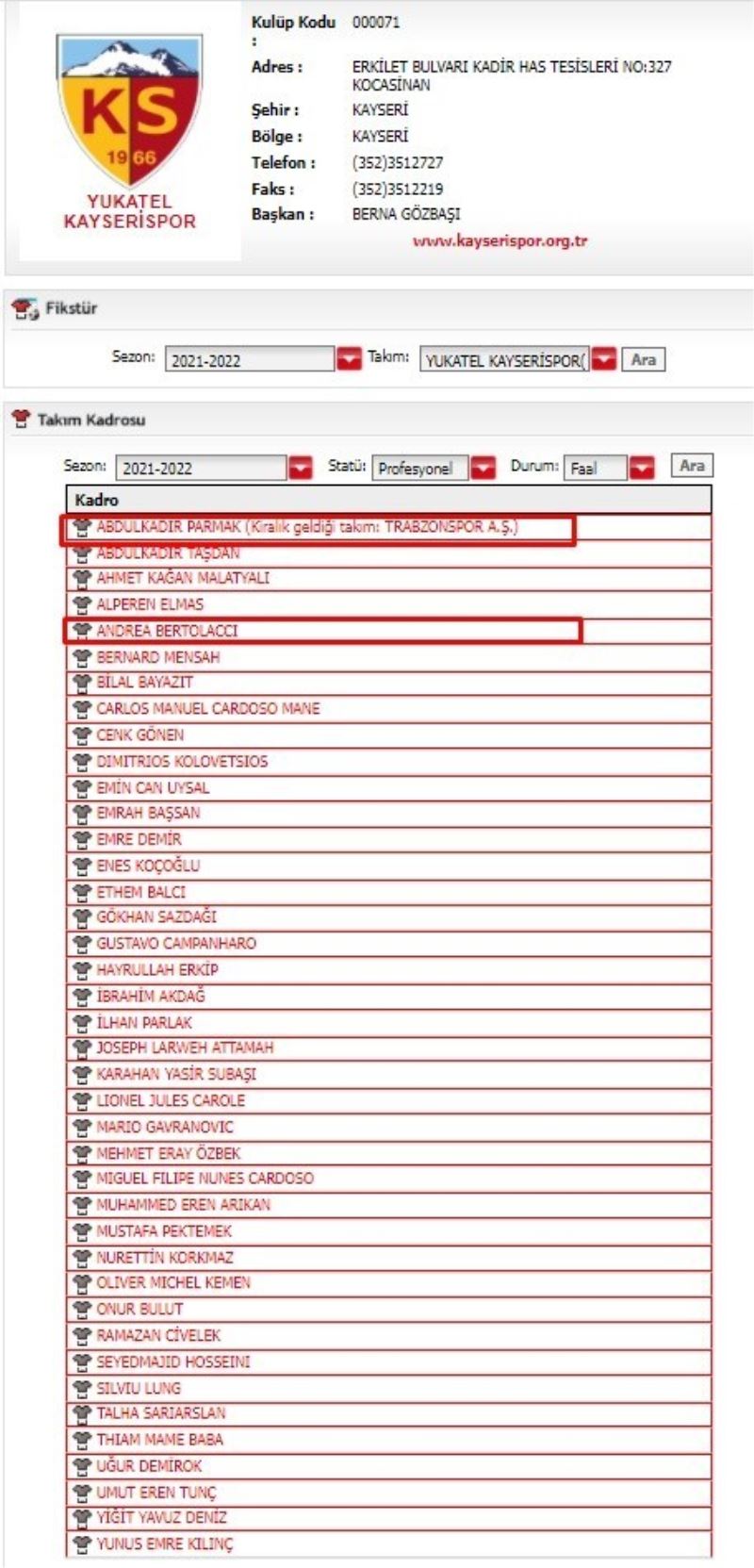 Süper Lig’de ligin 21.haftasında yarın deplasmanda Adana Demirspor’a konuk olacak Yukatel Kayserispor’da kadrosuna kattığı Abdulkadir Parmak ve Andrea Bertolacci’nin lisanlarını çıkarttı. 2 futbolcu yarın oynanacak olan Adana Demirspor maçında forma giyemeyecekler.