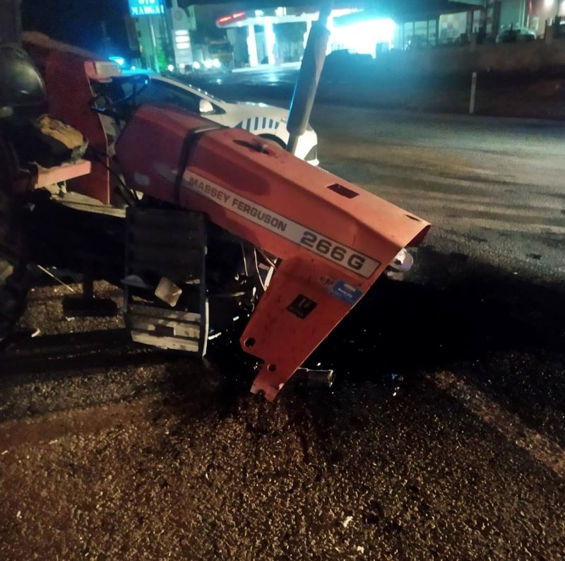 Kayseri’nin Yeşilhisar ilçesinde tırla çarpışan traktör ikiye bölündü. Kazada 1 kişi yaralandı.