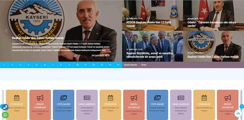 Kayseri’nin en büyük sivil toplum kuruluşu olan Kayseri Esnaf ve Sanatkârlar Odaları Birliği’nin (KESOB) Başkanlığı’nı yürüten Şeyhi Odakır; çağa ayak uydurduklarını, birliğe ait kurumsal web sitesinin yenilendiğini belirterek, “Kurumumuzun dijital yüzü olan web sitemizi yeniliyor, görünümünü ve alt yapısını güçlendiriyoruz. Yeni, modern ve kullanım kolaylığıyla kesob.com esnafımızın vatandaşımızın hizmetinde olmaya devam edecek” dedi.