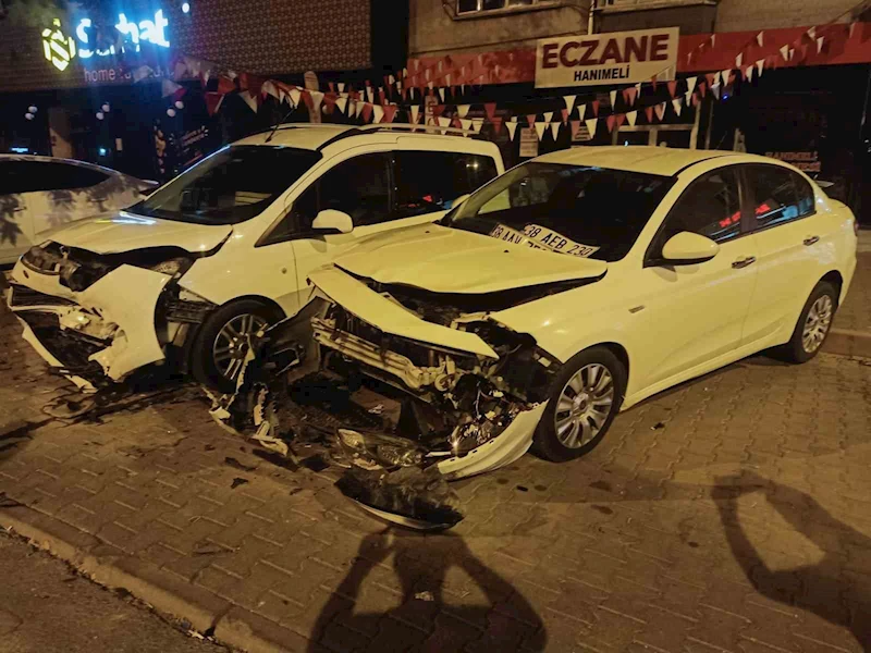 Kayseri’nin Kocasinan ilçesinde sürücüsünün direksiyon hakimiyetini kaybettiği otomobil, park halinde bulunan 2 araca çarparak yan yattı.