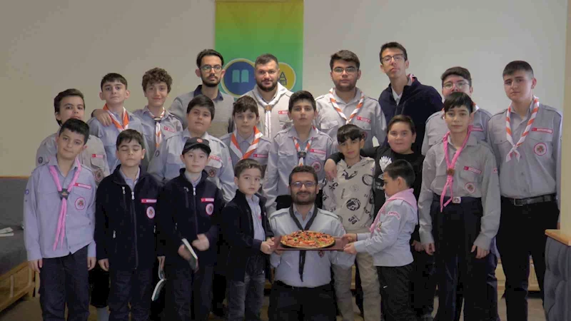 Kayseri’de Pozitif Genç İzcilik Spor Kulübü tarafından düzenlenen faaliyete katılan küçük izciler, doğa şartlarında aç kalmamak için yemek yapmayı öğreniyor. İzciler, kapalı alan faaliyeti olarak da yiyecek içecek hizmetleri öğretmeni olan izci liderlerinden pizza yapmayı öğrendi.