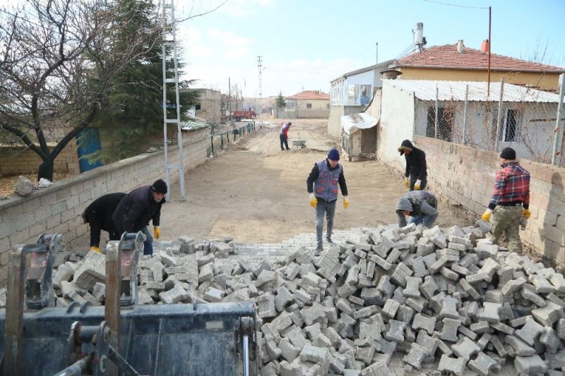 Develi Belediyesi’nin kırsal mahallelerde yürüttüğü parke çalışmaları kış şartlarına rağmen hız kesmeden devam ediyor.