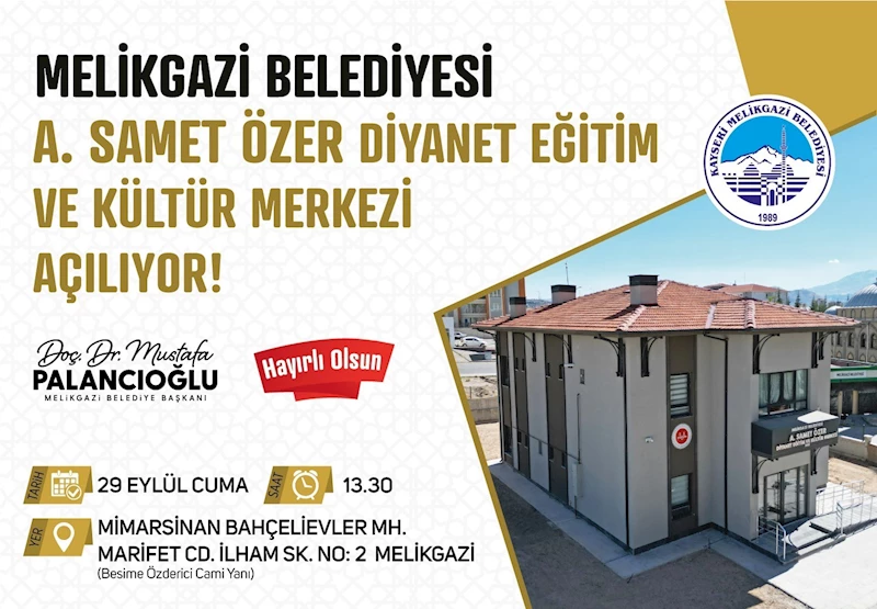 Eğitim hizmetlerine önemli yatırımlar yaptıklarını söyleyen Melikgazi Belediye Başkanı Doç. Dr. Mustafa Palancıoğlu, “ Diyanet eğitim ve kültür merkezlerimiz dini eğitimin verildiği, kültürel gelişimin desteklendiği, vatandaşlarımızın birçok etkinlik yaparak sosyalleşebildikleri yerlerdir. Hayırsever ailemizle birlikte güzel bir diyanet eğitim ve kültür merkezini daha Melikgazi’mizde hayata geçiriyoruz. A. Samet Özer Diyanet Eğitim ve Kültür Merkezi’mizde, zemin katta 4-6 yaş aralığındaki çocuklarımızın zihinsel, duygusal, sosyal, dini ve ahlaki gelişiminin destekleneceği 2 adet sınıf ve oyun odası bulunuyor. Birinci katta ise bayanların dini eğitimlerini tamamlamalarına yönelik 2 adet sınıf ile toplu etkinliklerin yapılabileceği çok amaçlı salon bulunuyor. Bahçelievler Mahallesi, İlham Sokak üzerinde inşa ettiğimiz A. Samet Özer Diyanet Eğitim ve Kültür Merkezi’nin açılışını 29 Eylül Cuma günü saat 13.30’da Çevre, Şehircilik ve İklim Değişikliği Bakanımız Sayın Mehmet Özhaseki’nin teşrifleriyle gerçekleştireceğiz. Açılış törenimize tüm hemşehrilerimizi davet ediyorum” dedi.