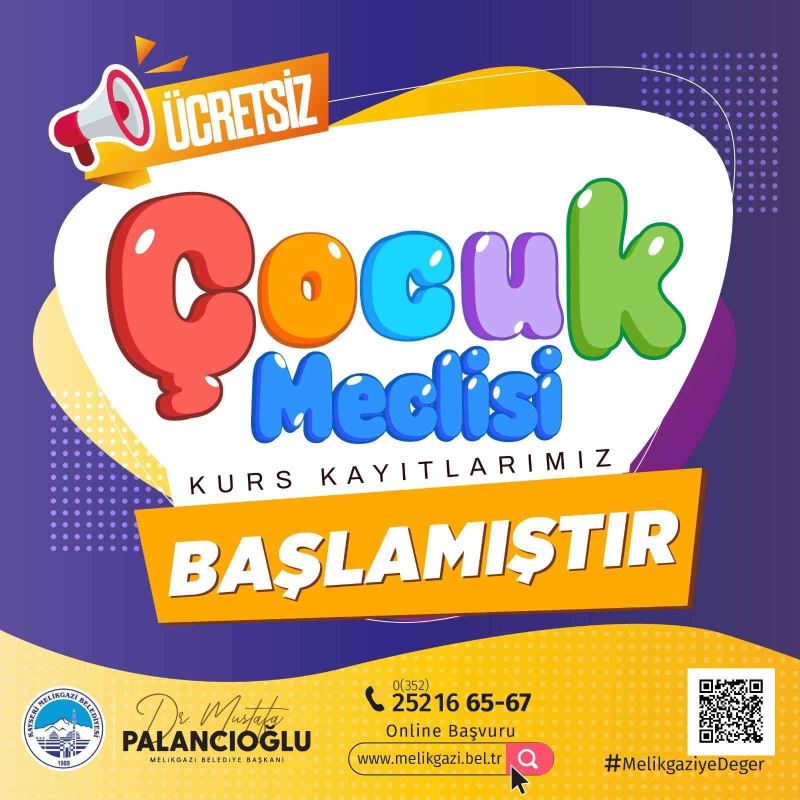 Melikgazi Belediye Başkanı Dr. Mustafa Palancıoğlu, okul döneminde 7-14 yaş arasındaki çocuklar için "Çocuk Meclisi" kurs kayıtlarının başladığını söyledi.