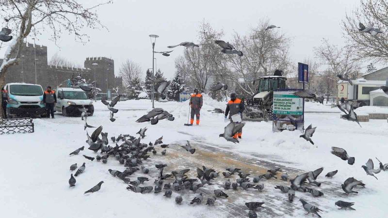 Melikgazi Belediyesi, Kayseri’de etkili olan kar yağışı nedeniyle yiyecek bulmakta zorlanan sokak hayvanları ve kuşlar için yemleme yaptı.
