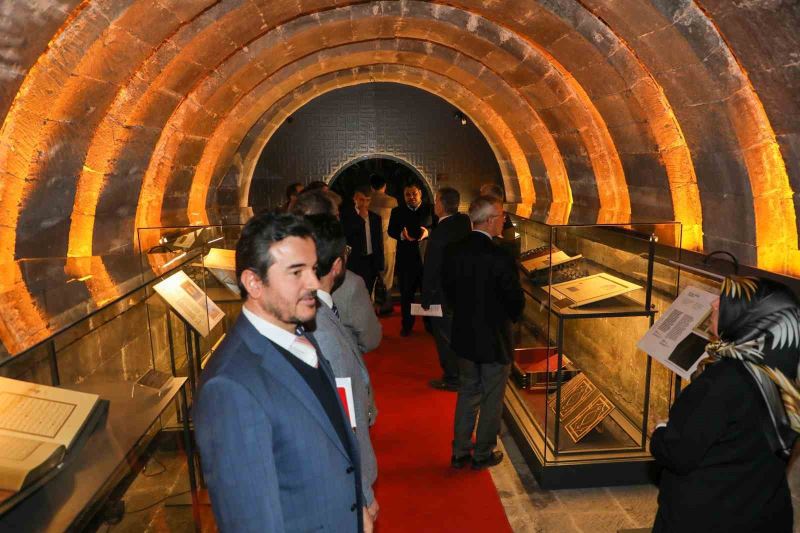 Sergide Hz. Osman’ın okurken şehit edildiği mushafın tıpkıbasımı başta olmak üzere Şeyh Hamdullah Efendi’nin II. Bayezid dönemine ait 1499’da istinsah ettiği eseri ile Ahmet Karahisari’nin Kanunî Sultan Süleyman’ın talebi üzerine ilk 220 sayfasını yazdığı ve daha sonra öğrencisi Hasan Çelebi’nin 1584-87 yıllarında tamamladığı Kur’an’ı Kerim gibi birbirinden kıymetli birçok eserlerin tıpkıbasımları sergileniyor. Ayrıca, hat sanatında kullanılan deri, mürekkep, hokka gibi araç gereçler de sergide yer alıyor.