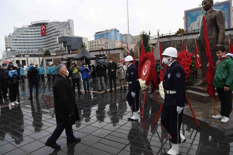 Cumhuriyet Meydanı’nda düzenlenen anma töreni, Vali Şehmus Günaydın, Garnizon Komutanı Hava Pilot Tuğgeneral Vedat Öncel, Büyükşehir Belediye Başkanı Memduh Büyükkılıç’ın Türkiye Cumhuriyeti’nin kurucusu Gazi Mustafa Kemal Atatürk’ün vefat yıl dönümü dolayısıyla Cumhuriyet Meydanı’ndaki Atatürk Anıtı’na çelenk bırakmasıyla başladı. Törende siren sesleri eşliğinde 2 dakikalık saygı duruşunda bulunuldu. Bayraklar yarıya indirilirken, saygı duruşunun ardından İstiklal Marşı okundu.
