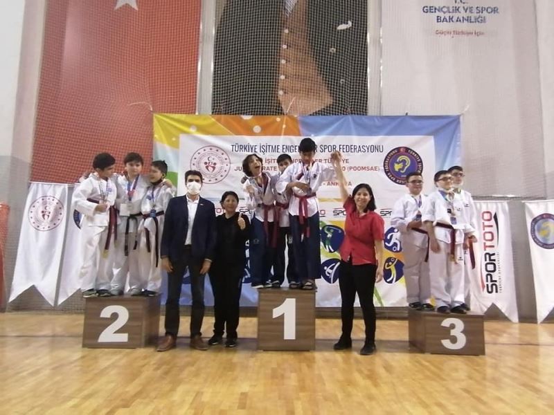 ANKARA’DA 6 HAZİRAN’DA YAPILAN İŞİTME ENGELLİLER TÜRKİYE TAEKWONDO ŞAMPİYONASI’NA KAYSERİ’DEN MUTLU YÜZLER PROJESİ KAPSAMINDA KATILAN 12 SPORCU 5 ALTIN, 5GÜMÜŞ VE 6 BRONZ MADALYA KAZANARAK TÜRKİYE ÇAPINDA TURNUVADA EN ÇOK MADALYA KAZANAN EKİP OLDU.ANKAR