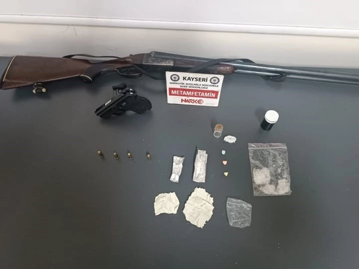 Edinilen bilgiye göre Narkotik Suçlarla Mücadele Şube Müdürlüğü görevlilerince yapılan çalışmalarda M.D.’nin uyuşturucu madde ticareti yaptığı bilgisi alındı. M.D.’nin Melikgazi ilçesine bağlı Yıldırım Beyazıt Mahallesi’nde bulunan ikametinde yapılan aramada; 3 paket halinde 6 gram uyuşturucu maddesi, 2 parça halinde LSD maddesi, 3 adet hap, 1 adet tabanca ve 4 adet mermi, 1 adet ruhsatsız tüfek ele geçirildi. İkamette bulunan 3 kişiye ’uyuşturucu madde kullanmak ve bulundurmak suçundan’ işlem yapılırken M.D. ise gözaltına alındı. Yapılan incelemelerde ayrıca M.D.’nin ’Kullanmak için Uyuşturucu Madde Bulundurmak’ suçundan arandığı tespit edildi.