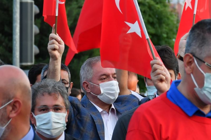 Kayseri OSB Başkanı Tahir Nursaçan, Kartal Şehitliği’nden başlayarak Cumhuriyet Meydanı’na kadar süren demokrasi yürüyüşüne ve Cumhuriyet Meydanı’ndaki programa katıldı.