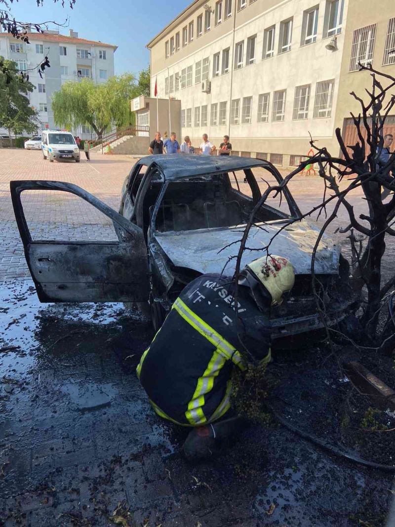 Kayseri’nin Melikgazi ilçesinde bir okulun bahçesinde park halinde bulunan otomobilde yangın çıktı. Yangın itfaiye ekiplerinin çalışmasıyla söndürülürken, otomobil kullanılmaz hale geldi.
