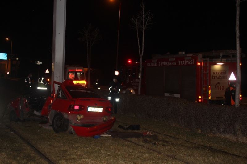 Kayseri’nin Melikgazi ilçesinde tramvay yoluna girerek elektrik direğine çarpan otomobilde bulunan 2 kişi hayatını kaybederken 1 kişi yaralandı.