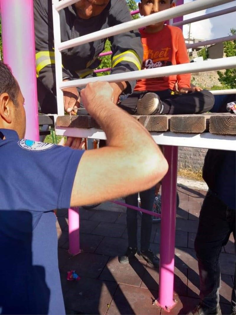Oyun parkında ayağı ahşap arasına sıkışan çocuğu itfaiye kurtardı