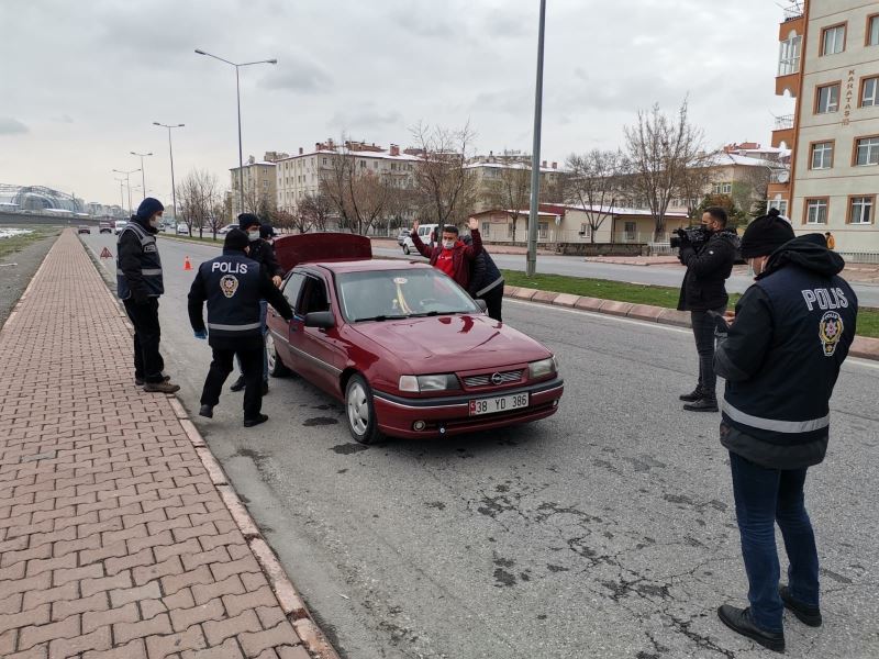 İl Emniyet Müdürlüğü ekipler, "Erciyes Huzur-3 Uygulaması" kapsamında belirlenen bölgelerde şüpheli şahıs ve araçları kontrol etti. Araç ve şahısları sorgulayan ekipler, kural ihlali yapan kişilere cezai işlem uyguladı. Uygulama noktasında bir aracın plakası olmadığı için sürücüsünü kontrol eden ekipler, şahsın HES sorgusunda ’riskli’ grubunda olduğunu belirledi. Karantinada kalması gerekirken trafikte polis ekiplerine yakalanan şahıs, "Yalan atacak halim yok. Riskli olabilirim, niye riskli? Hanim Covid çıktı, biz yaklaşmadık. Bana da 10 gün rapor verdiler, ’iş yerine gitmeyeceksin’ dediler. Çocuk değiliz ki biz burada oyun oynayalım" diyerek kendini savundu. Polis ekipleri, şahsa ’karantina ihlali’nden cezai işlem uyguladı. Öte yandan uygulama sırasında bir şahıs üzerinde yapılan aramada da 1,5 gram metamfetamin maddesi ele geçirildi.