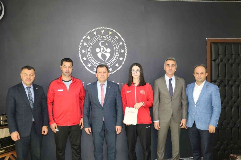 Avrupa 21 Yaş Altı Masa Tenisi Şampiyonası’nda çift kadınlar kategorisinde altın madalya kazanan Özge Yılmaz, Gençlik ve Spor İl Müdürü Ali İhsan Kabakcı’yı makamında ziyaret etti.