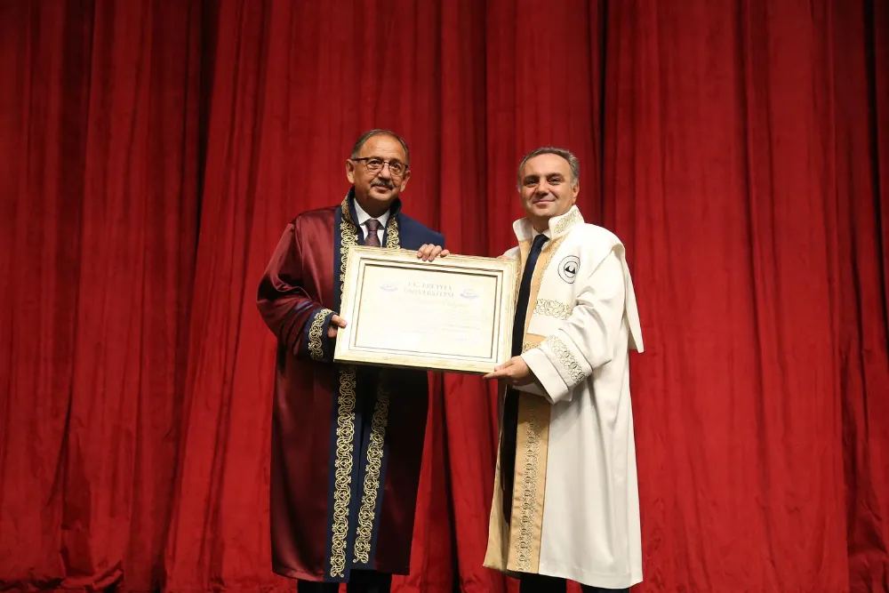 Erciyes Kültür Merkezi'nde gerçekleşen törende Bakan Özhaseki, Fahri Doktora ünvanı da alarak cübbe giydi.