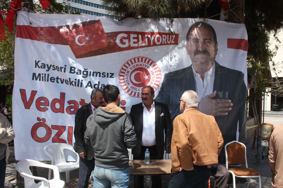 28.Dönem Kayseri Bağımsız Milletvekili Adayı Vedat Ali Özışık, cumhuriyet meydanına seçim standı açtı. Özışık, 50 binin üzerinde oy alarak milletvekili seçileceğini söyledi.