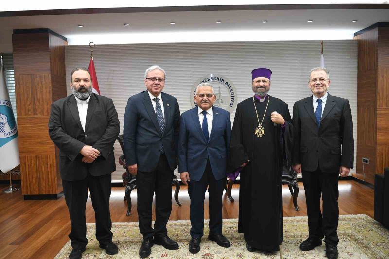 Türkiye Ermenileri Patriği Sahak II, beraberindeki Peder Şirvan Mürzyan ve Ermeni Kilisesi Vakfı Başkanı Zadik Toker ile birlikte Büyükşehir Belediye Başkanı Dr. Memduh Büyükkılıç’a nezaket ziyaretinde bulundu.