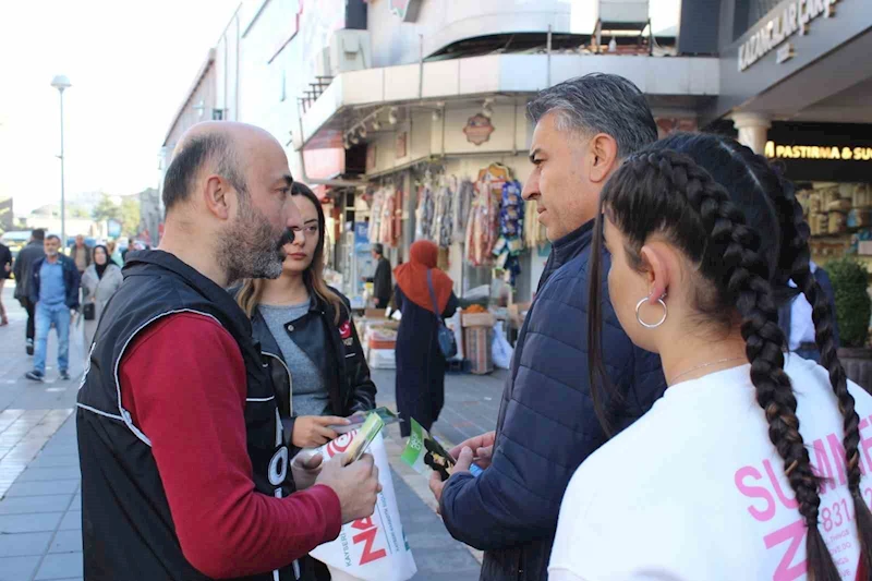 Narkotik Şube Müdürlüğü ekipleri, Cumhuriyet Meydanı’nda vatandaşlara broşür dağıtarak, bilgilendirme yaptı. Vatandaşlara uyuşturucunun zararlarını anlatan ekipler, vatandaşlara çanta ve kalem hediye etti.