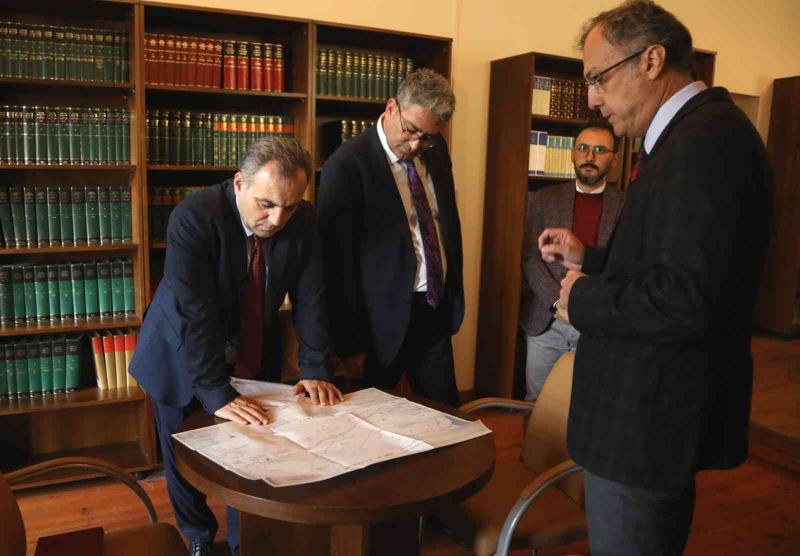ERUSAM’ın tarihi binasında incelemelerde bulunan Rektör Altun, ayrıca ERUSAM’da yer alan Kütüphane ve Talas Amerikan Ortaokulu Anı Odası’nı da yakından inceledi.