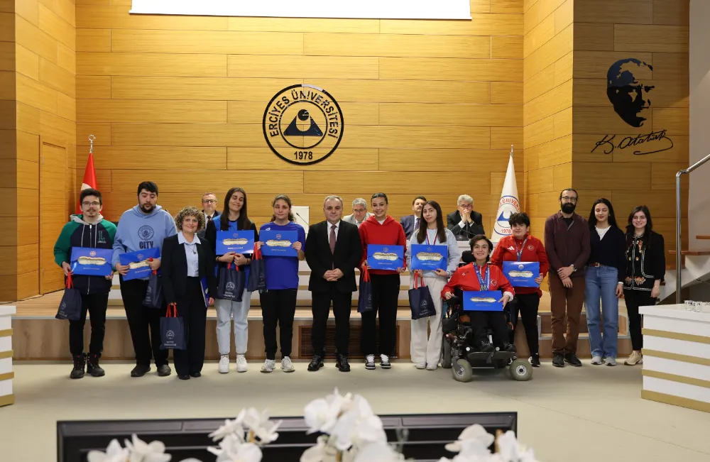 Erciyes Üniversitesi Rektörü Prof. Dr. Fatih Altun, Özel gereksinimli sporcular ile milli sporculara teşekkür belgesi takdiminde bulundu.