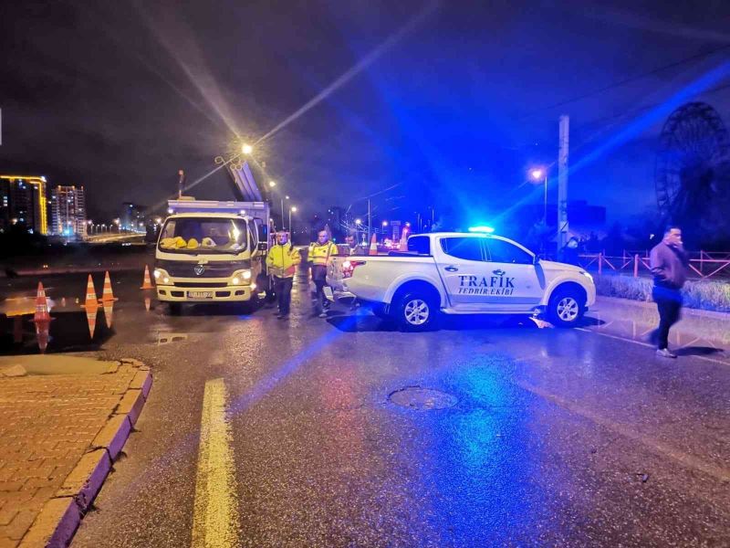 Su birikintilerinin olduğu yollar da olumsuzluk yaşanmaması için polis ekipleri tarafından trafiğe kapatıldı.