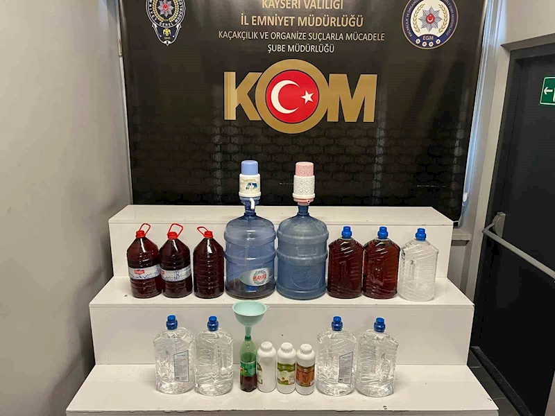 Kayseri’de kargoyla getirdiği etil alkolleri sahte alkol yaparak piyasaya sürmeye çalışan bir kişi yakalandı. Polis ekiplerince yapılan operasyonda 31 litre sahte alkol, 20 litre etil alkol ele geçirildi.