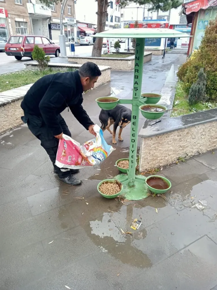 Pınarbaşı Belediye Başkanı MenduhUzunluoğlu, havaların soğuması ile birlikte beslenme olanakları azalan sokak hayvanları için yem ve mama takviyesi yaptıklarını bildirdi.