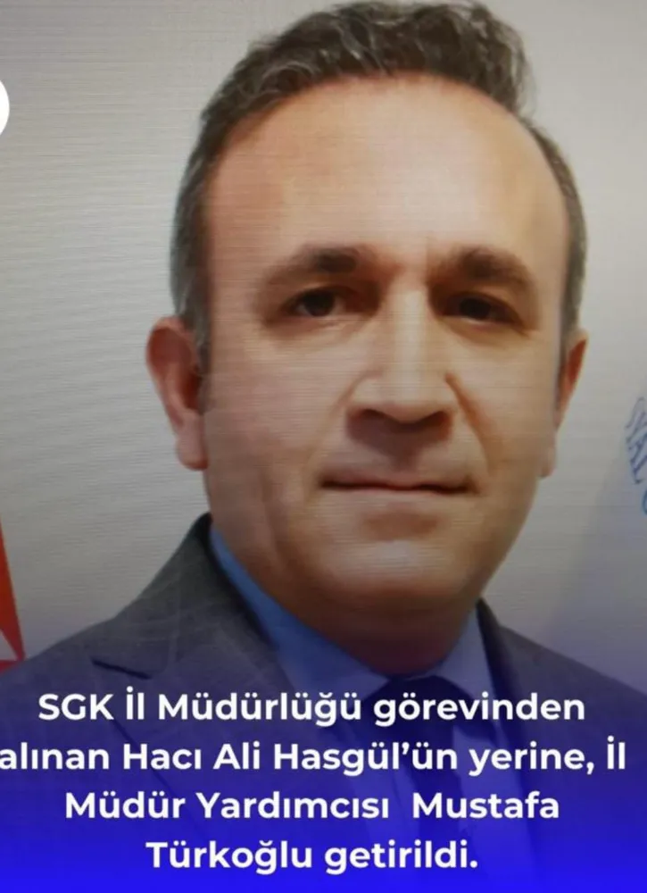 SGK Kayseri İl Müdürü Hacı Ali Hasgül’ün görevden alınmasının ardından kuruma atama yapıldı. Kurumda Müdür Yardımcısı olarak görev yapan Mustafa Türkoğlu vekâleten SGK İl Müdürlüğüne getirildi.Hacı Ali Hasgül’ün ise SGK Genel Müdürlüğünde uzman olarak görevlendirildiği belirtildi.