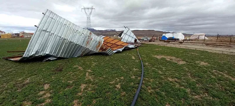 Şiddetli rüzgar ahırın çatısını uçurdu