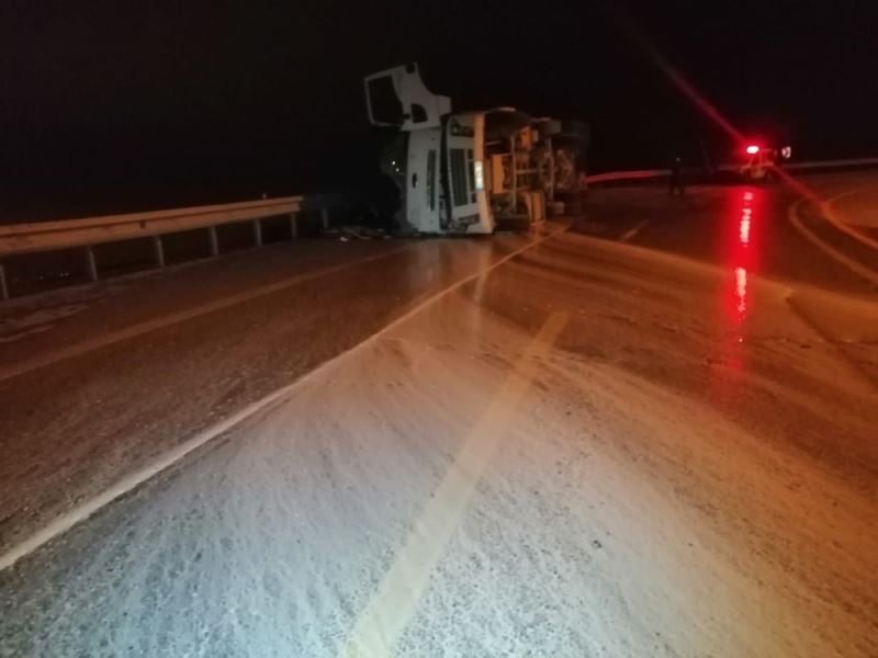 Süt tankeri devrildi, tonlarca süt yola döküldü